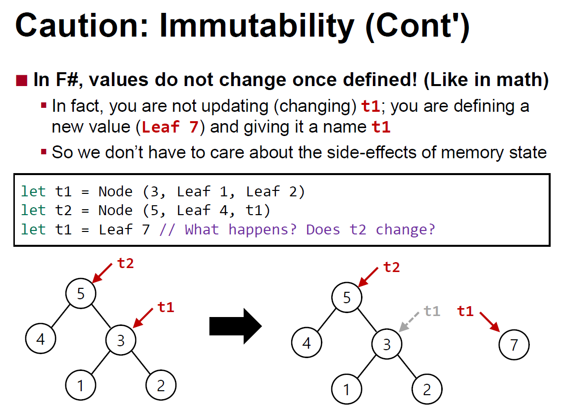 결론적으로 F#은 불변적 성질을 가짐으로써 코드 자체를 엄밀하고 빠르게 사용할 수 있다는 것이다.