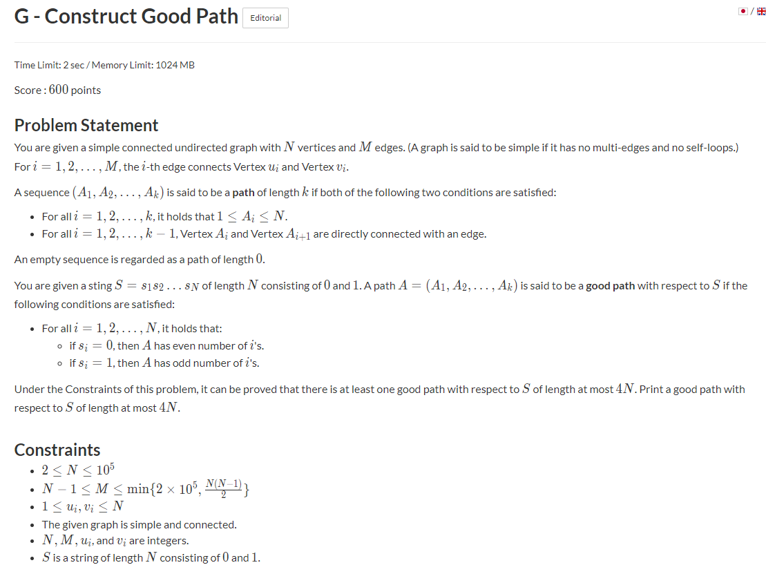 이번에는 그래프가 주어지고, 또 path를 찾을 건데, 각각의 정점이 홀수번/짝수번 방문되었는지가 주어진다.